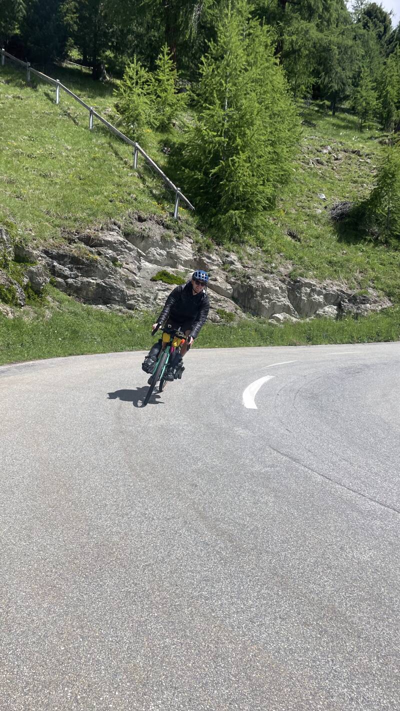 My review of the Dolomites.. Spectacular, busy, hard to find camp spots, lots of pro cyclists, expensive restaurants, and many tourists. I camped one night off the side of the road in the hills in the Dolomites, and then made my way into Brunico via the classic Dolomite passes. I met a bunch of other bike packers along that section of the ride. Smiles on faces, and heavy rigs.